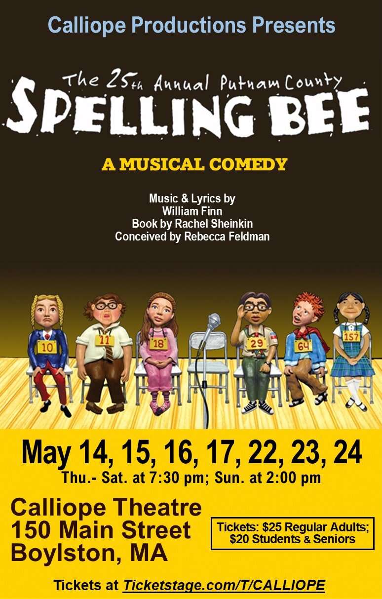 Six awkward tweens vie for a coveted spelling championship in The 25th Annual Putnam County Spelling Bee, the fast-paced, 2005 Tony Award-winning musical comedy that has charmed audiences around the world.